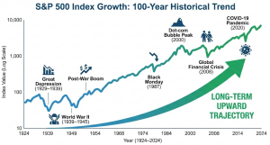 經常有朋友問我:「Leo,美股現在都漲到天邊了,現在進場會不會變成最後一隻老鼠?」、「美國印鈔票是不是泡沫?」面對這些焦慮,我總會打開一張 S&P 500 指數的百年走勢圖給他們看——那是一條經歷了戰爭、通膨、泡沫破裂,卻依然頑強向上的曲線。